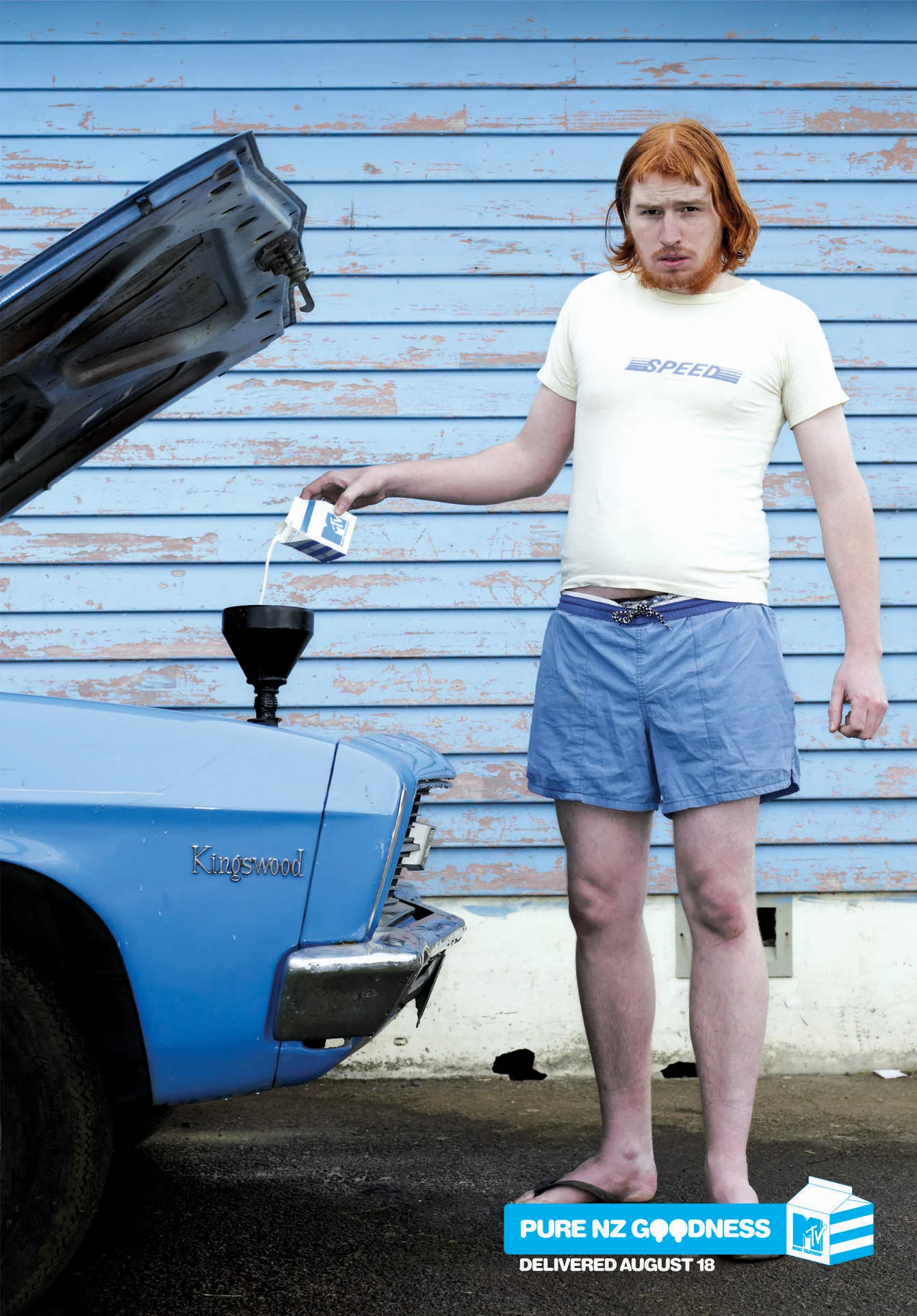 Launch campaign for the MTV channel in New Zealand called “Pure NZ Goodness". The integrated campaign is centred around a fictitious dairy factory set amongst the lush green hills of New Zealand. Inside the factory the cows are milked by bikini clad girls and delivered all over New Zealand in MTV milk vans. The milk has strange side effects for those who drink it. In one of the ads a couple stab each other after drinking the milk, while in another, girls rub blood soaked steaks all over their bodies. Ironically, the campaign line is “Pure NZ Goodness".